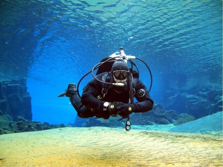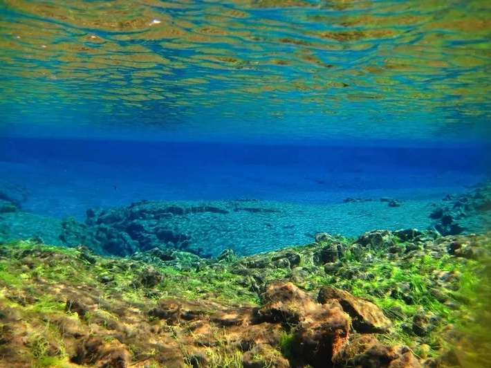 如果再下潜到 Thingvellir Lake,能见度达100米,可以随时喝一口至清至纯的冰川水。由于冰川水终年只有2至4度,如此低温是没有浮游生物的,因此,所有鱼都游到较暖的水域觅食了。