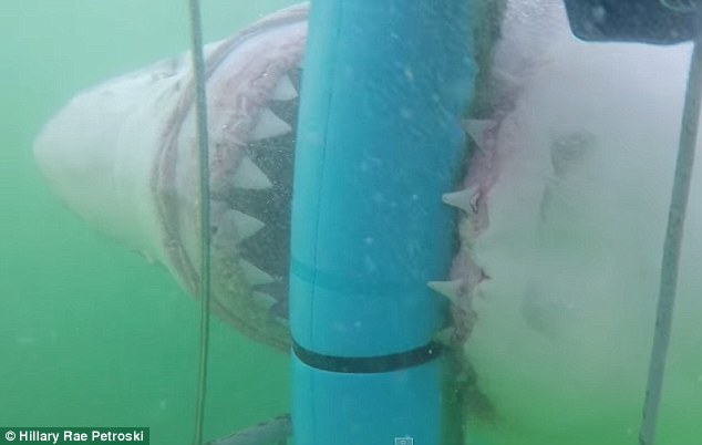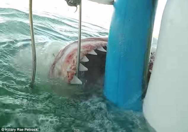 希拉里在YouTube的视频介绍中写道:“它咬穿了连着笼子的圆形浮筒,并咬断了蓝色栏杆外面的所有绳索。这条鲨鱼其实比这里看到的要近得多……对于视频引起的惊吓我很抱歉。”