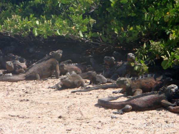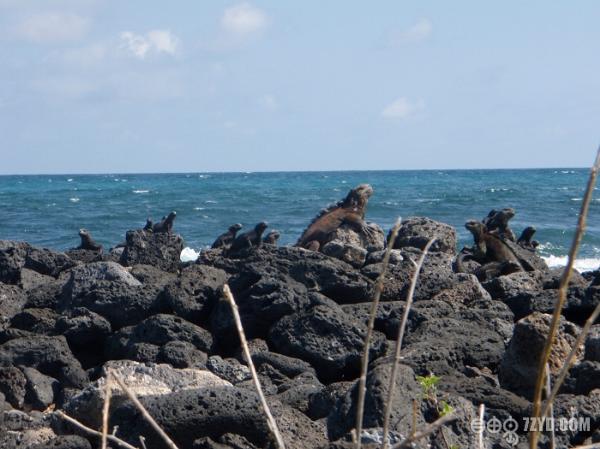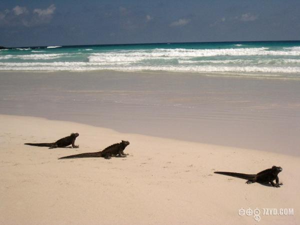 Galapagos群岛是世界上唯一拥有海蜥蜴和陆蜥蜴交配而产下的杂交蜥蜴的地方。这种杂交蜥蜴的生存能力较差,因为海陆蜥蜴不可以跟海蜥蜴或者是陆蜥蜴交配,只能跟同种类的海陆蜥蜴交配,所以数量比较少。我发现了红树林下大量的蜥蜴。总觉着蜥蜴的样子有些可怕,比虎、狮、豹等类似的动物更可怕。因为那些兽类凶猛让人明明白白,可蜥蜴象蛇一样的冷体动物很多时候都是一动不动,而且眼光无神,给人阴森森的感觉。